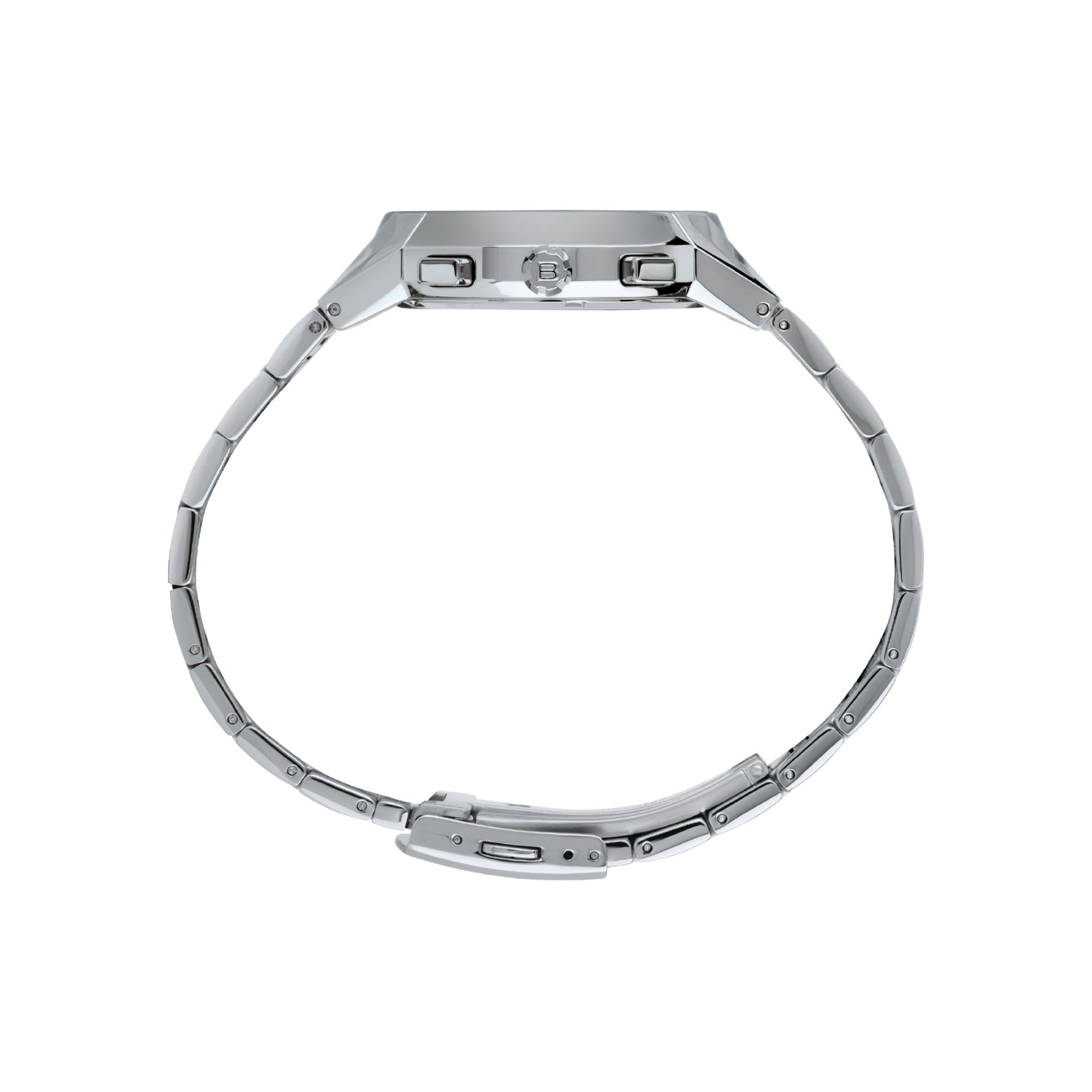 - Bracciale: Acciaio lucido con sezione centrale satinata e chiusura con pulsanti e fermaglio di sicurezza.