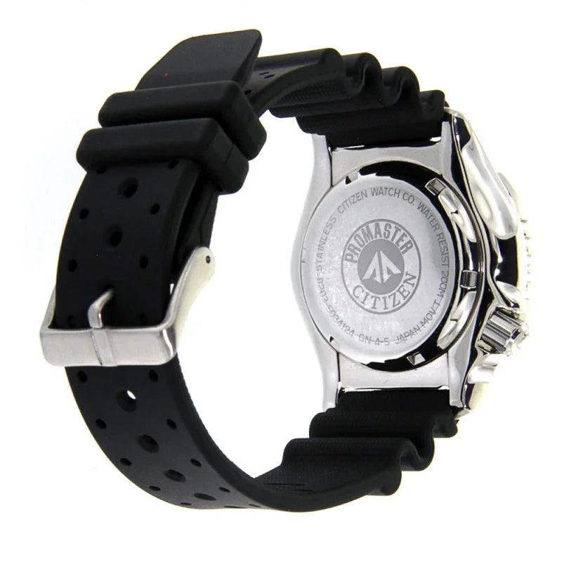 Il movimento dell'orologio è a carica automatica ed ha inoltre una resistenza all'acqua di 20 atmosfere Eco Drive a carica luce con riserva di carica di 270 giorni. Cassa da 43 mm. Resistente all'acqua fino a 100 metri.