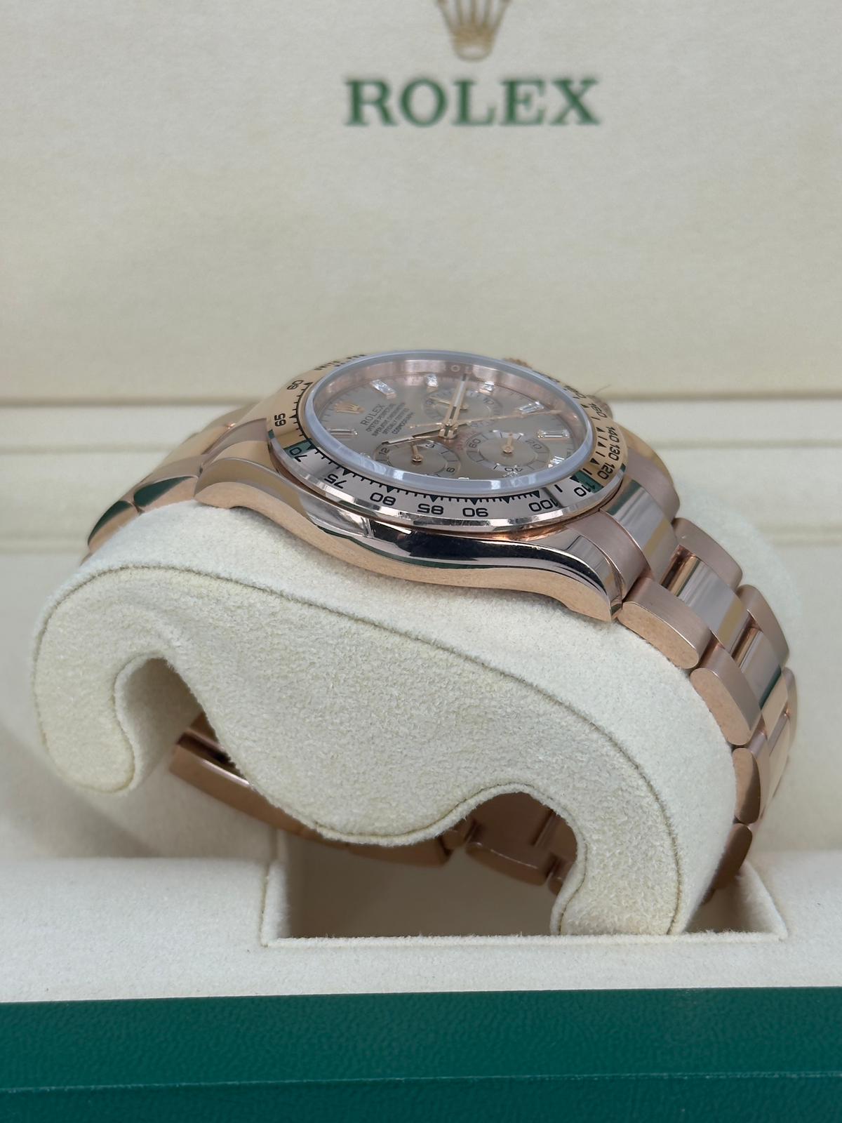 Quadrante: oro rosa con vetro zaffiro, indici diamanti e lunetta in oro rosa
