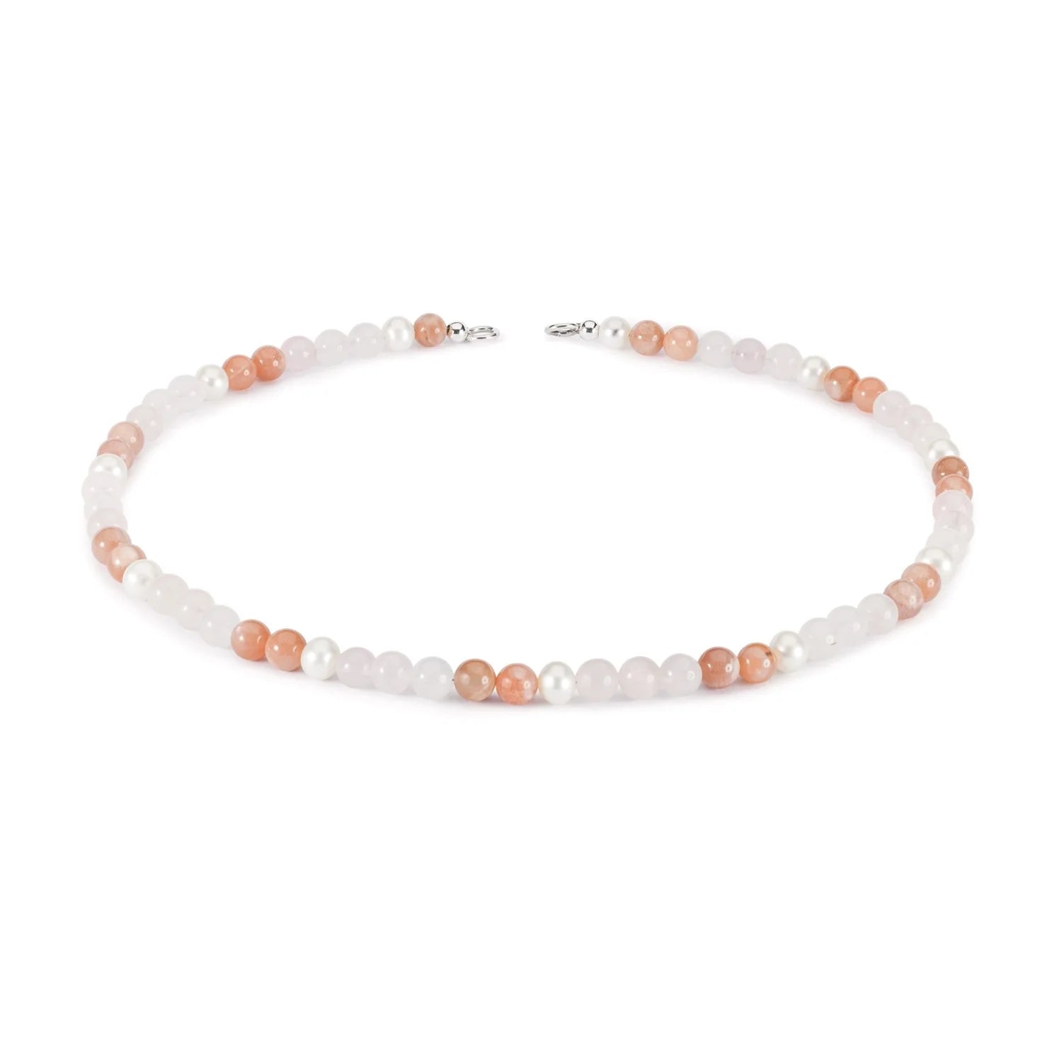 La collana Dream of Love è realizzata a mano con quarzo rosa, pietra di luna feldspato e perle d'acqua dolce. Ogni pietra è accuratamente selezionata per creare un armonioso equilibrio tra amore, intuizione e trasformazione. Il quarzo rosa invita al calore e alla guarigione emotiva, la pietra di luna feldspato amplifica la saggezza interiore, mentre le perle d'acqua dolce aggiungono un tocco di eleganza.