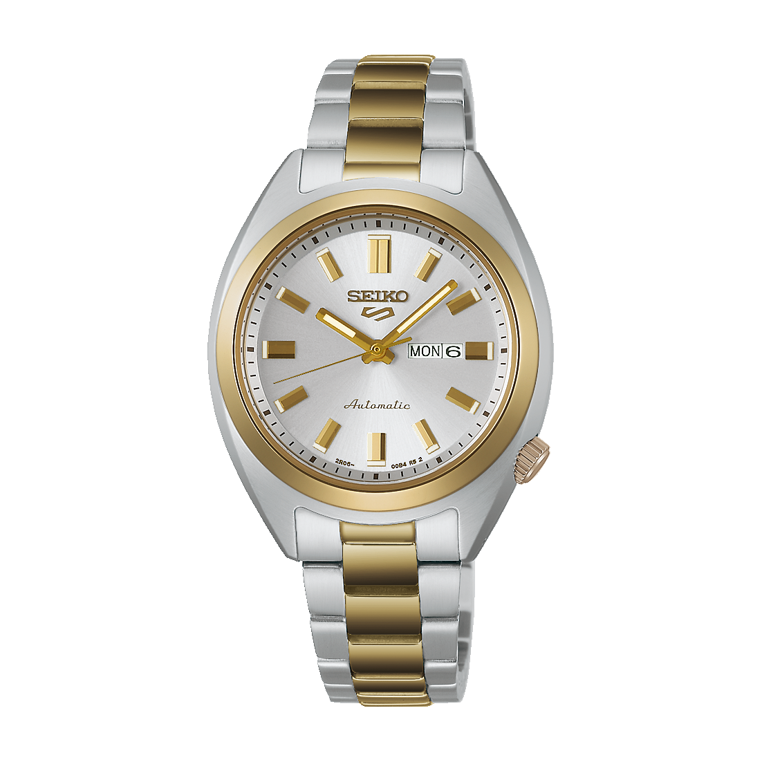 Orologio donna seiko, SRE024K1, collezione 5 sport, movimento automatico, solo tempo, cassa in acciaio 32mm, quadrante silver con datario, LumiBrite su lancette e indici, vetro hardlex curvo, Funzione arresto lancetta dei secondi, bracciale in acciaio, resistenza all'acqua 10 bar, calibro 2r06