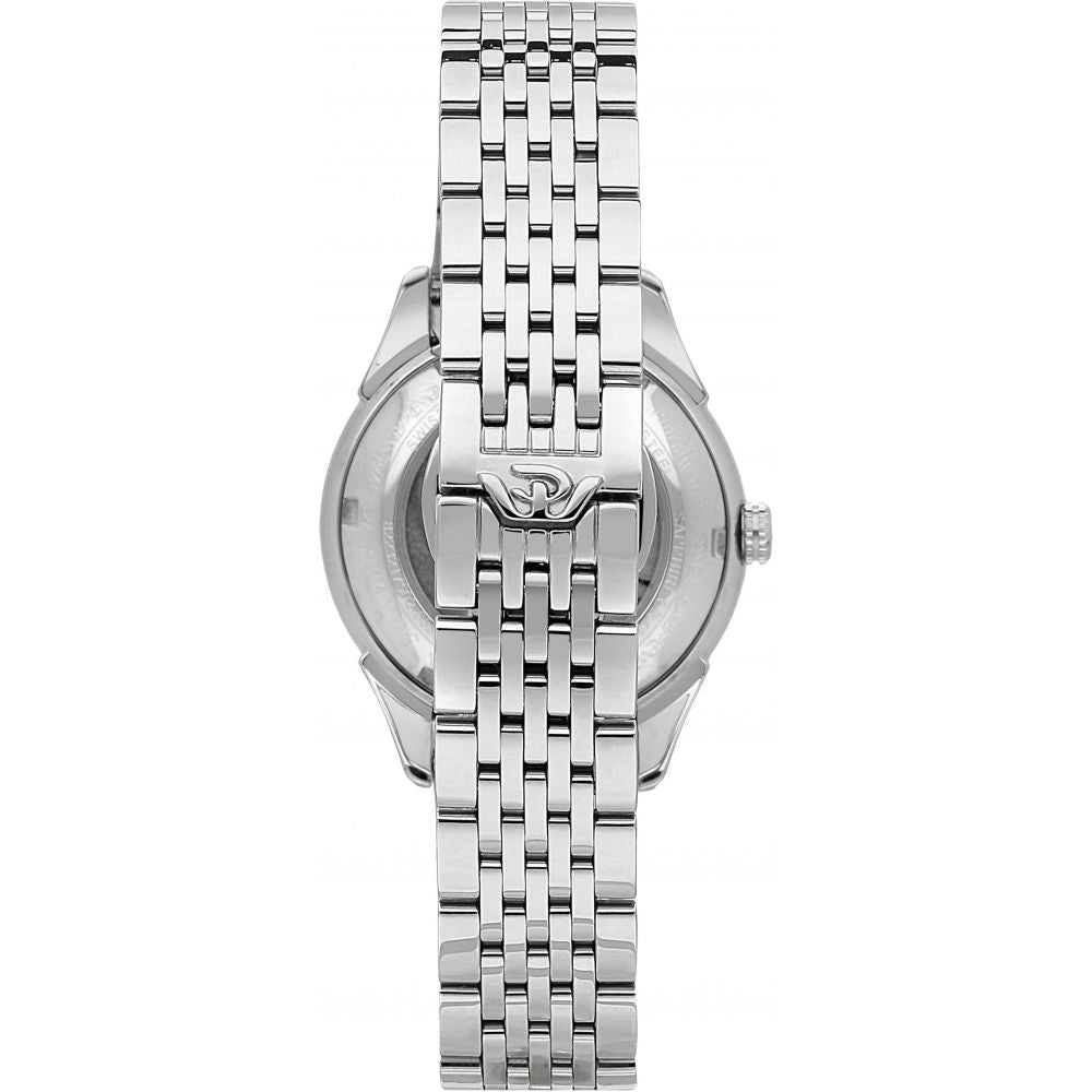 Orologio solo tempo da donna di Philip Watch della collezione roma. Modello con cassa tonda in acciaio lucido del diametro di 34mm e vetro zaffiro. Modello con bracciale in metallo di colore argento e chiusura con doppia farfalla con pulsanti. Orologio con movimento automatico a tre sfere mvt. Stp1-11 e resistenza all'acqua di 5 atm. La referenza è r8223217502