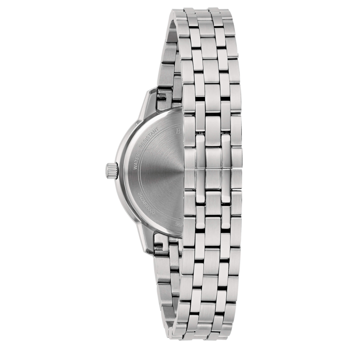 Orologio Bulova donna solo tempo movimento al quarzo,della collezione Sutton Diamond,realizzato in acciaio con chiusura a deployante. La dimensione è 31 MM,resistente all'acqua 3 ATM. La referenza è 8018225036331.