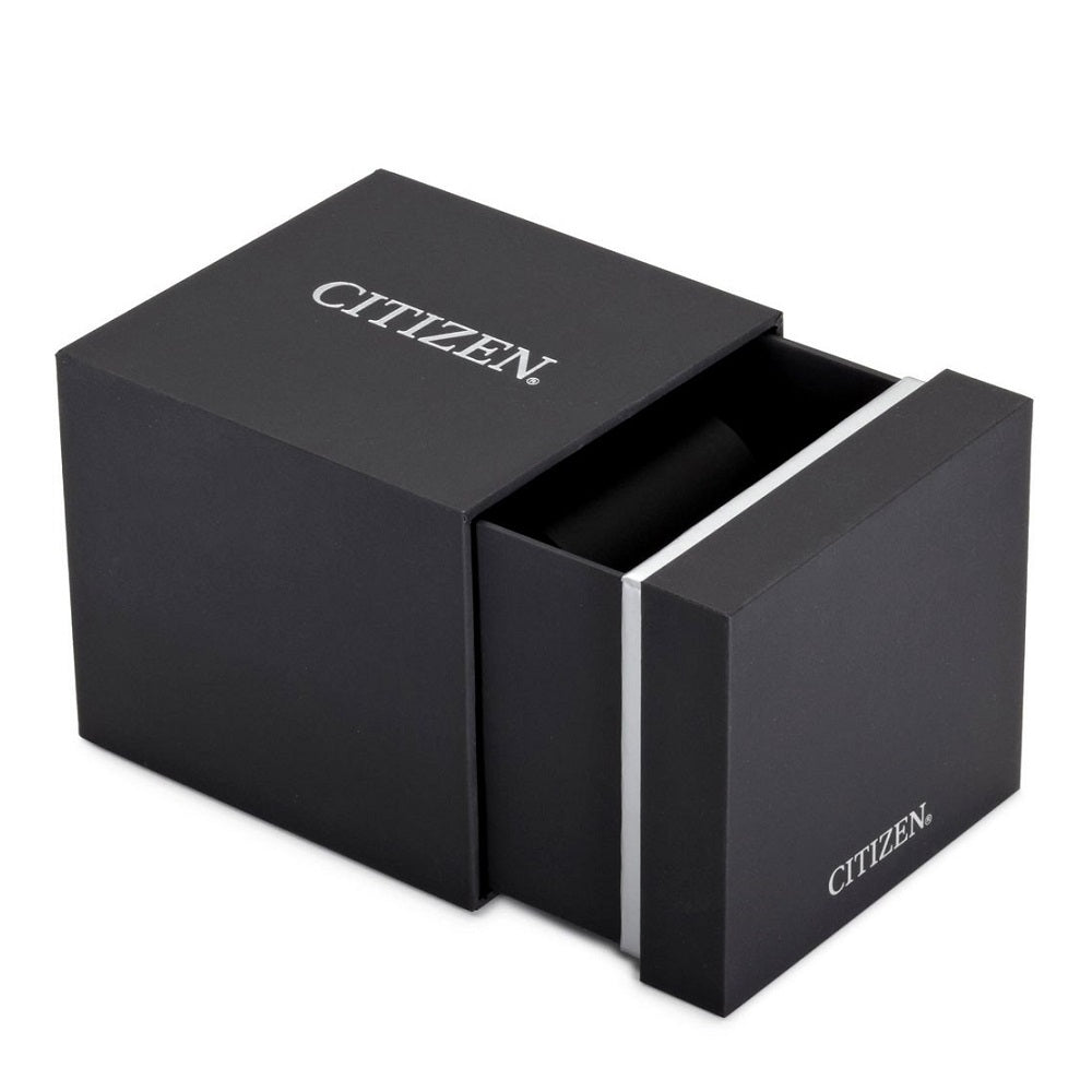 Movimento Eco Drive a carica luce con riserva di carica di 8 mesi, con indicazioni di ore, minuti, giorno, data. Cassa e bracciale realizzati in titanio Grado 2 lavorato con la tecnologia esclusiva Citizen Duratect che conferisce un elevato livello di finitura estetica attraverso l’alternanza di superfici lucide e spazzolate e al tempo stesso ne incrementa la resistenza all’abrasione di oltre 5 volte rispetto all’acciaio inox. Fondo serrato a vite. Quadrante con pattern materico ispirato alla granulometria tipica del titanio. Vetro zaffiro. WR 10 bar. Diametro cassa: 40 mm