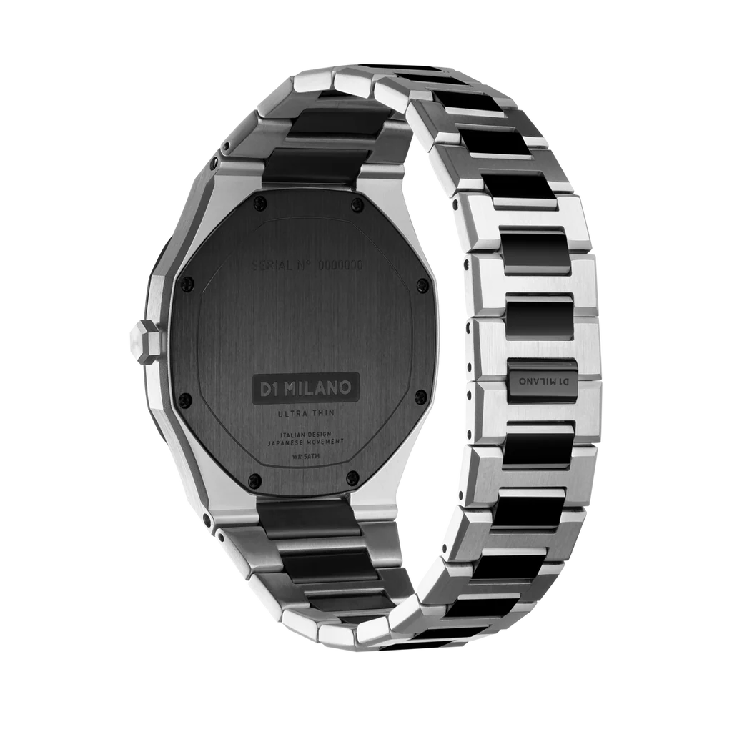 D1 Milano presenta Ash Ultra Thin, un orologio da uomo che unisce design moderno e stile retrò, ispirato alle forme iconiche degli anni '70. Con una cassa da 38 mm in acciaio e bracciale bicolore placcato PVD nero, questo modello è pensato per chi cerca eleganza e leggerezza.