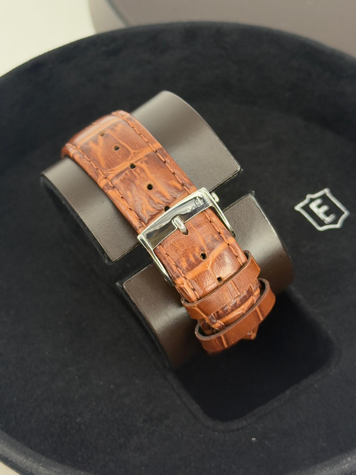 Cinturino: sostitutivo in pelle marrone con chiusura ad ardiglione