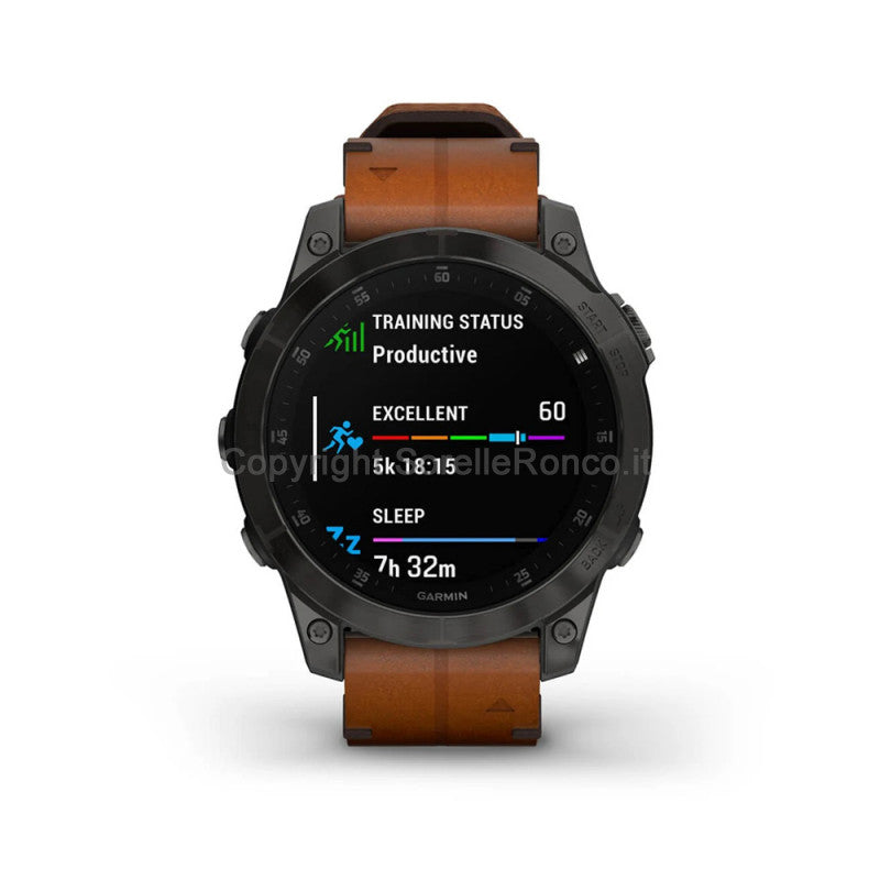 Garmin Smartwatch Epix Sapphire - Black TItanium con cinturino in pelle Chestnut