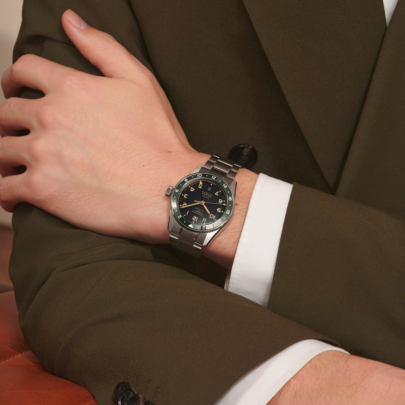 Modello: Spirit zulu time Movimento: Auomatico Impermeabilità: 10bar Cassa: 39mm Fondello: A vite Corona: A vite Cassa: Satinata Lunetta: Girevole bidirezionale con inserto in ceramica Vetro: Zaffiro Quadrante: Nero con numeri arabi dorati Cinturino: Acciaio Calibro: L844